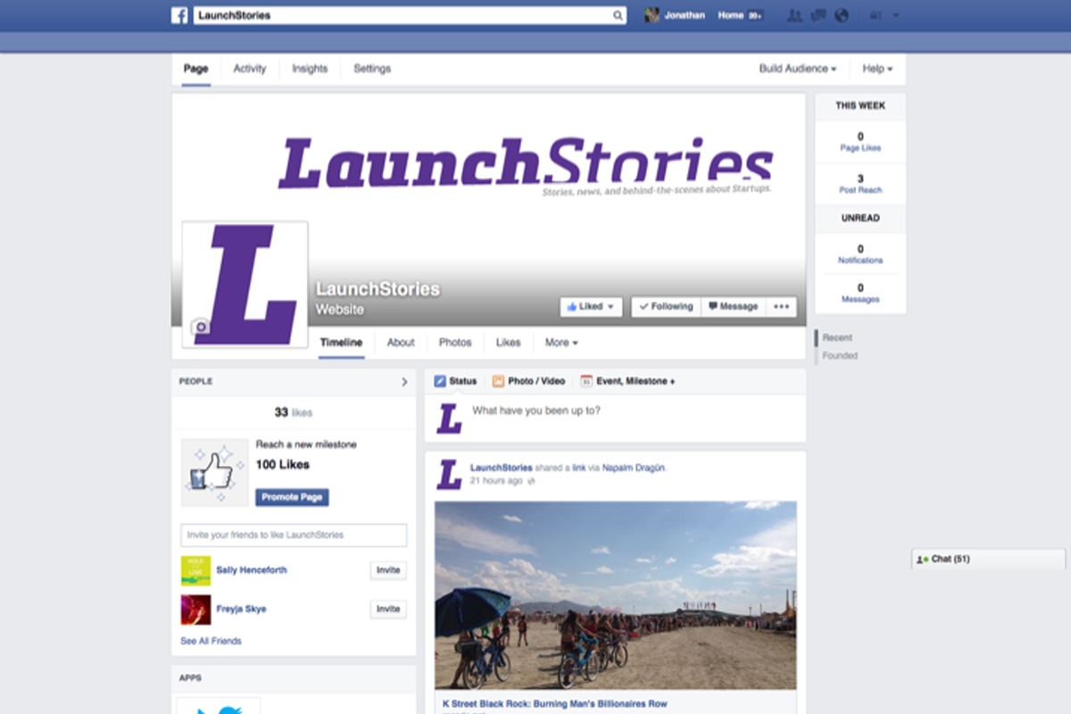 Launchstories.com facebook page at https://www.facebook.com/launchstories