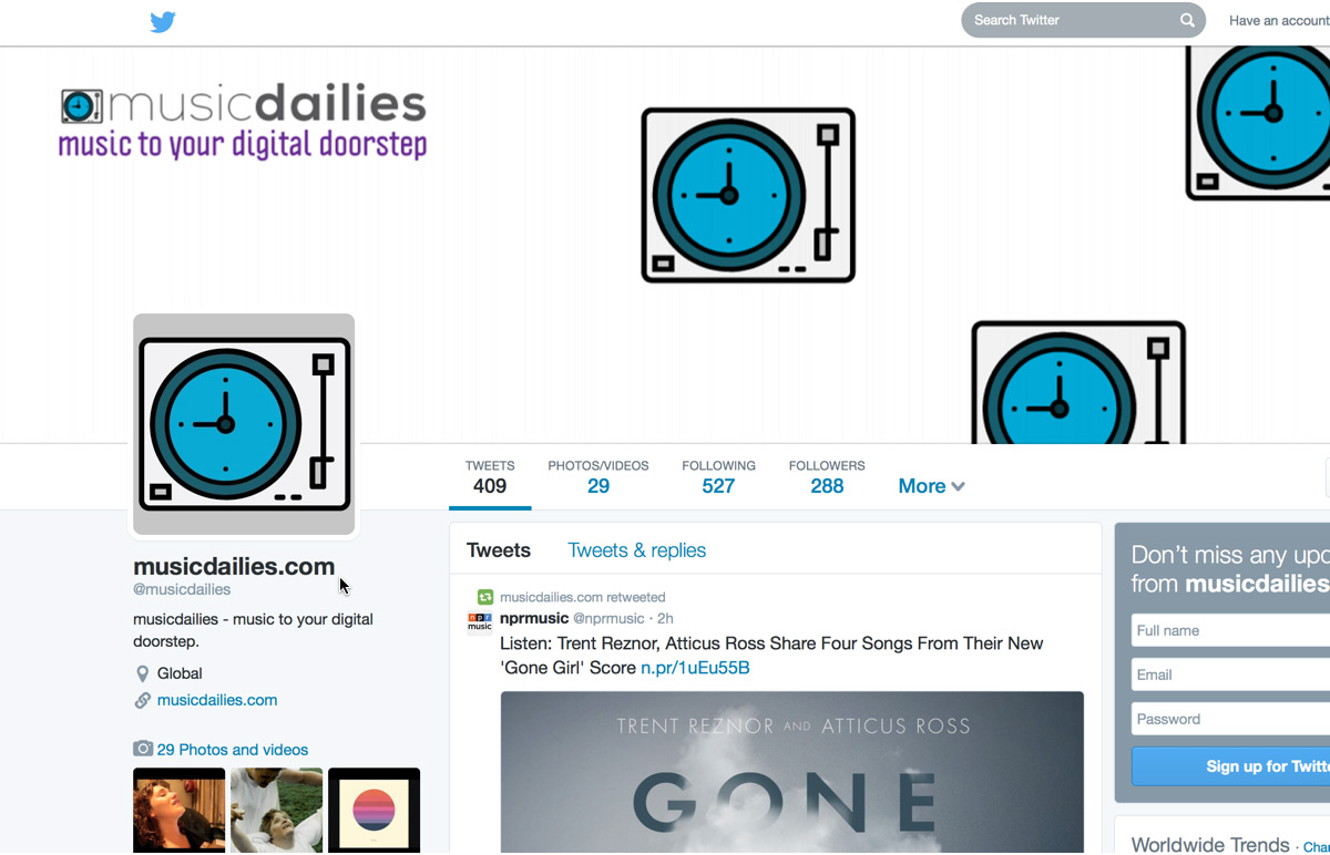 Musicdailies.com twitter page