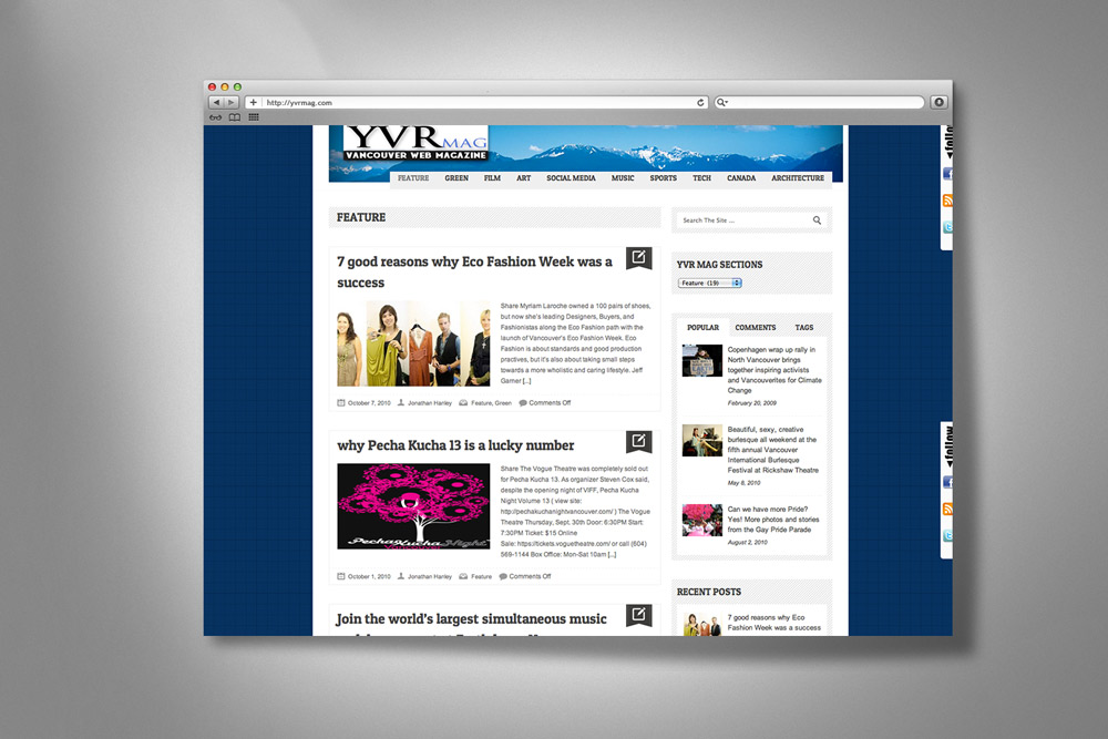 Custom designed wordpress site for the online magazine section of Canadatalent.com Canadatalent.com/magĀ is a multi-author magazine site about Canada Talent. Stories about talented Canadians or events happening in Canada. SIte users can search by tags or categories for the stories. The WordPress site allows for posting of photos, videos, and audio from insite and external hosted … Read more